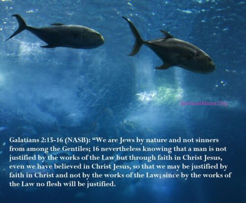 “15 “We are Jews by nature and not sinners from among the Gentiles; 16 nevertheless knowing that a man is not justified by the works of the Law but through faith in Christ Jesus, even we have believed in Christ Jesus, so that we may be justified by faith in Christ and not by the works of the Law; since by the works of the Law no flesh will be justified. 17 But if, while seeking to be justified in Christ, we ourselves have also been found sinners, is Christ then a minister of sin? May it never be! 18 For if I rebuild what I have once destroyed, I prove myself to be a transgressor. 19 For through the Law I died to the Law, so that I might live to God. 20 I have been crucified with Christ; and it is no longer I who live, but Christ lives in me; and the life which I now live in the flesh I live by faith in the Son of God, who loved me and gave Himself up for me. 21 I do not nullify the grace of God, for if righteousness comes through the Law, then Christ died needlessly.'”
